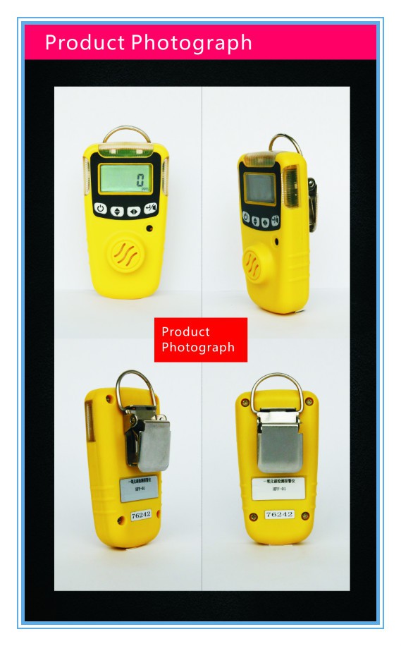 Prijenosni detektor jednog plina, to je vrsta koncentracije instrumenta koji kontinuirano detektira koncentraciju kisika, toksičnog i štetnog plina u radnoj okolini. Detektor detektira koncentraciju plina prirodnim difuzijskim načinom, koji koristi uvezene senzore i ima dobru osjetljivost i ponovljivost.